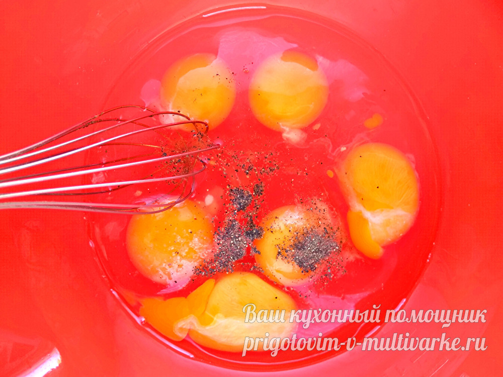 Вылить яичную массу. Запекать в духовке 250 градусов.