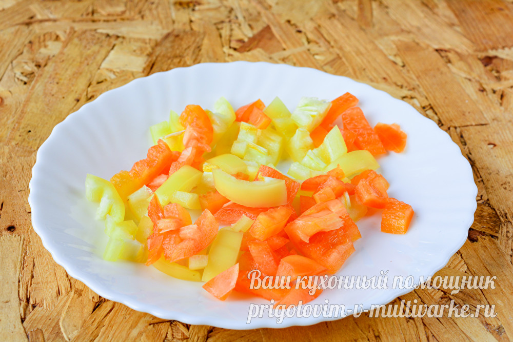 Чистим сладкий перец и нарезаем его небольшим кусочками.